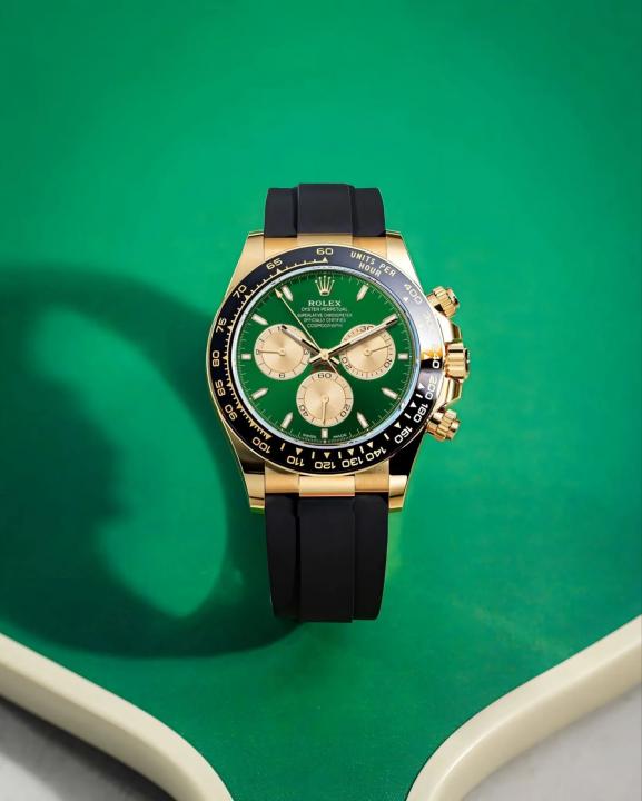 Premium yellow gold case + black ceramic bezel = luxury + sporty combo