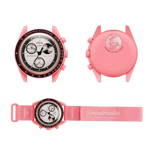 The Swatch x Omega Bioceramic MoonSwatch Mission to the Pink Moon is more than just a watch—it’s a statement of creativity and precision. Combining Omega’s legacy in horology with Swatch’s stylish and accessible design ethos, this extraordinary timepiece draws inspiration from the mesmerizing beauty of the Moon. Its vibrant pink hues add a modern twist, making it a standout accessory for anyone who values bold aesthetics and cutting-edge innovation.